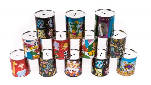 Hucha con brillos metálicos y destellos.