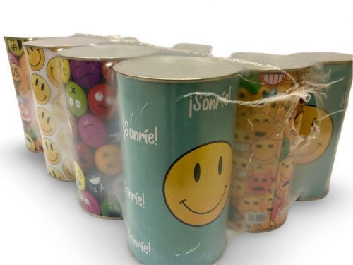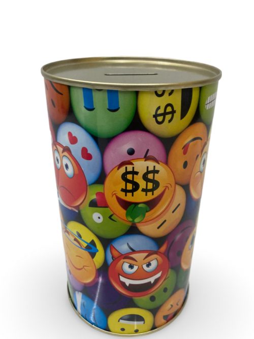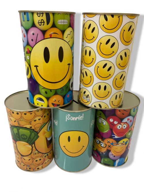 Símpaticos diseños de emoticonos para una bonita hucha metálica.
