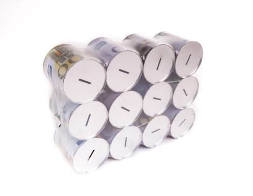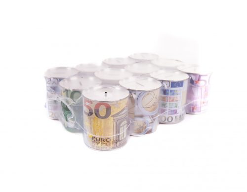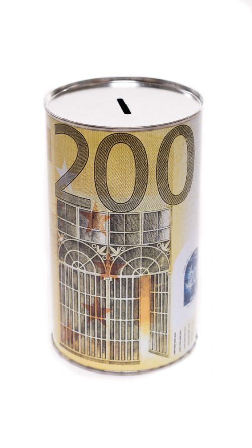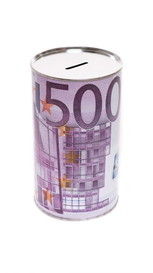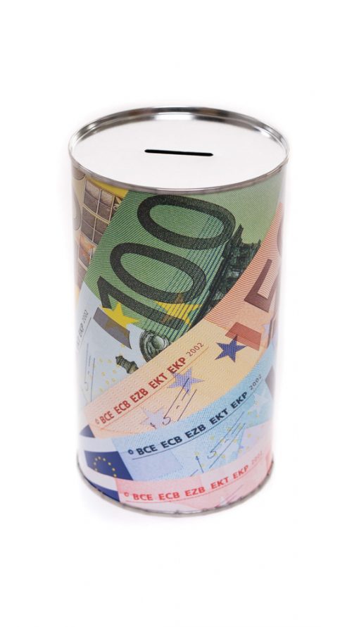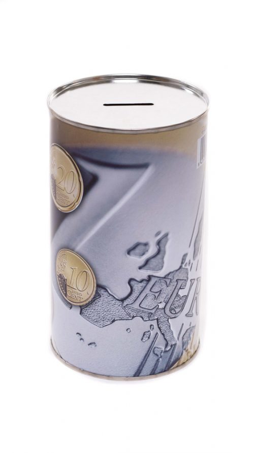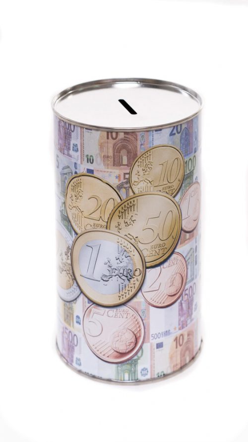 Huchas con cantidad de dibujos de Monedas y Billetes de Euro.